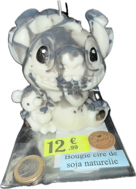 Bougie grand stitch Chaque sujet est unique et peut présenter des différences d’aspects et couleurs d’un modèle à l’autre Composée de cire de soja végétale, vous avez la possibilité de choisir votre parfum De Grasse parmi ceux proposés. Environ 330 grammes
