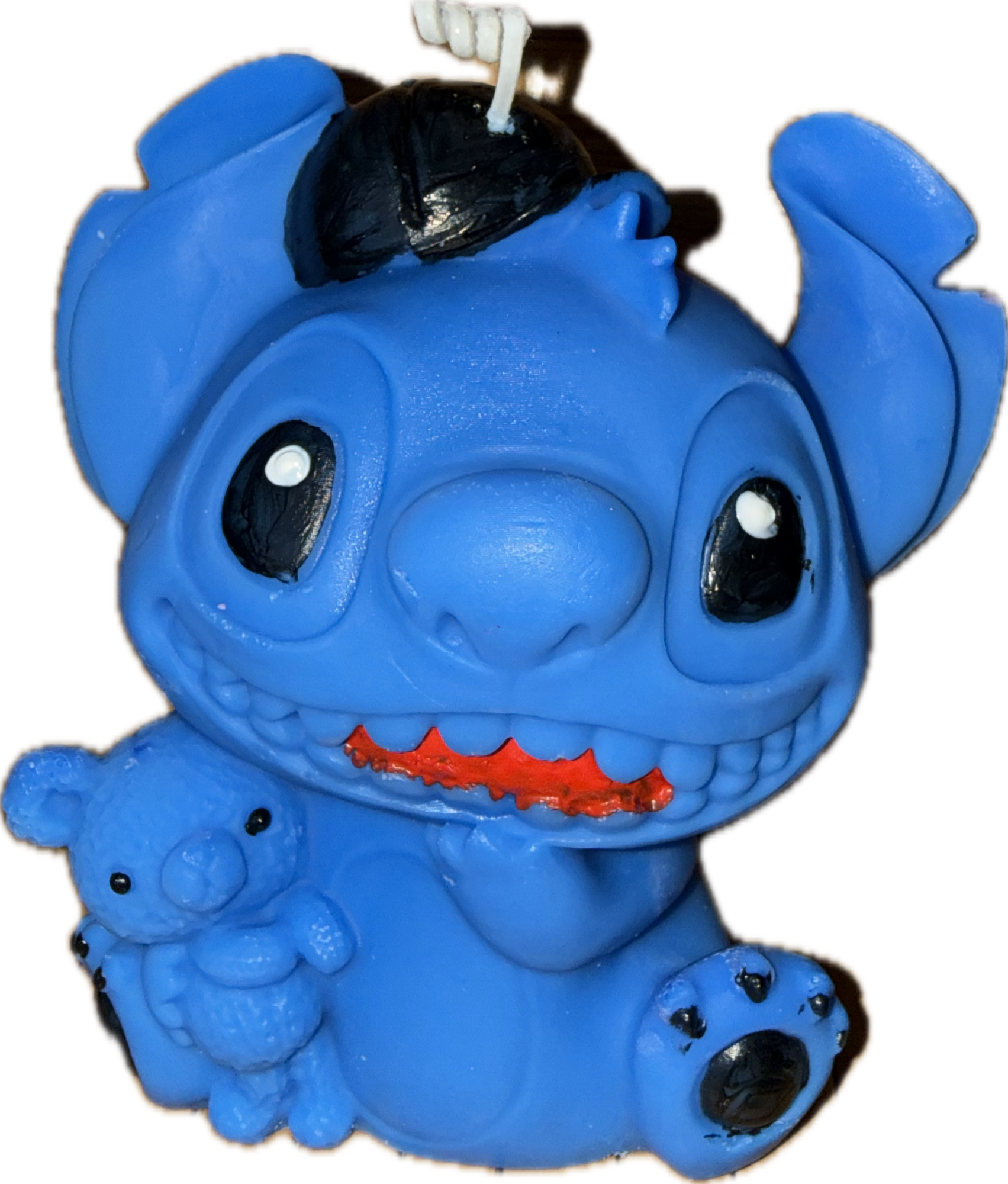 Bougie grand stitch bleu casquette 🧢 noire Chaque sujet est unique et peut présenter des différences d’aspects et couleurs d’un modèle à l’autre Composée de cire de soja végétale, vous avez la possibilité de choisir votre parfum De Grasse parmi ceux proposés. Environ 330 grammes FINITIONS ET PEINTURES À LA MAINS